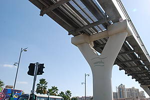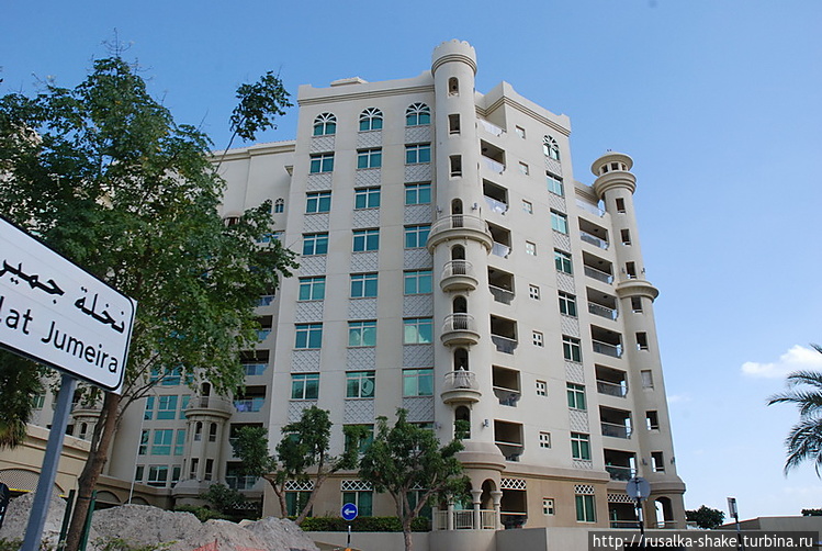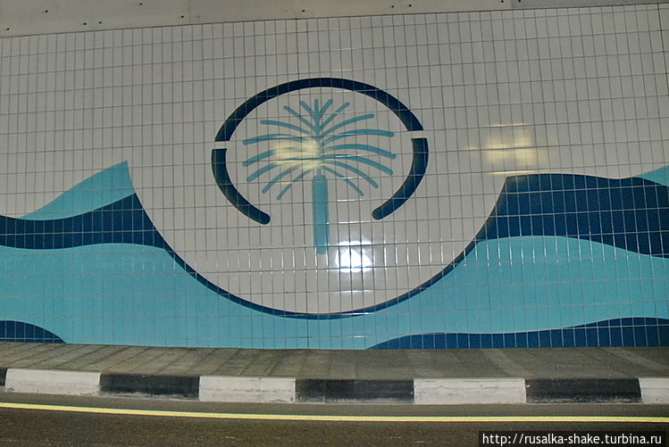 Вскоре мы были уже взбирались вверх по стволу пальмы Джумейра. Честно говоря, вблизи она меня несколько разочаровала. Если из самолета пальма выглядит действительно впечатляюще, то с земли она выглядит… никак. Т. е. вы даже никогда не поймете, что это место хоть чем-то примечательно: