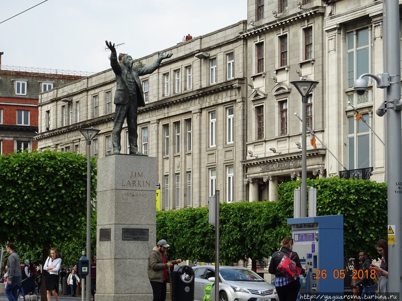 Так, скульптура профсоюзного лидера Джеймса Ларкина тоже обращает на себя внимание и вызывает некоторые ассоциации.
