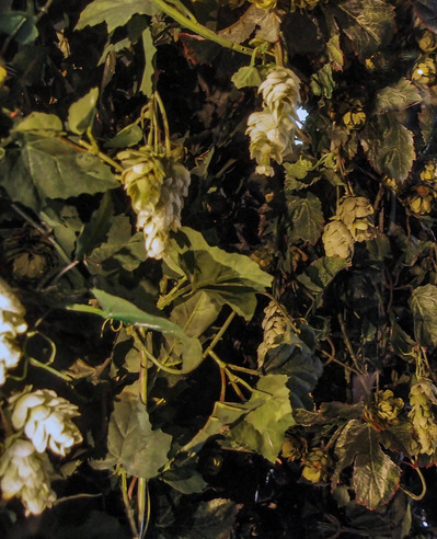 Хмель добавляют для аромата. В музее ячмень насыпан в огромный поддон, а хмель растёт в специальных витринах.