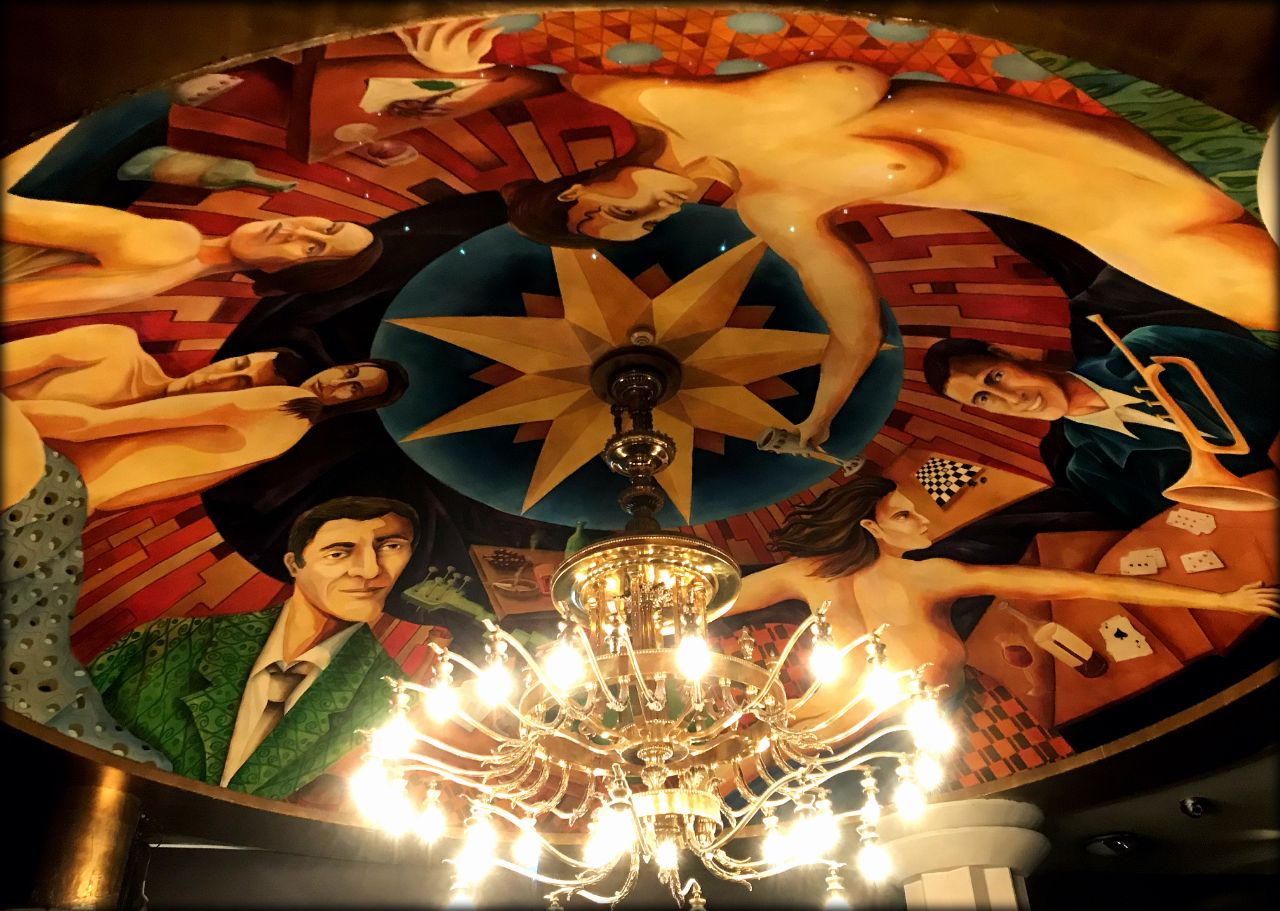А это мой последний кадр в отеле — расписной потолок ресторана. На завтраке были и хлеб и зрелище" :)
