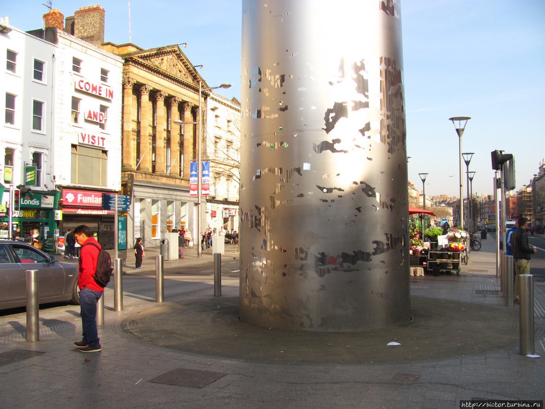 Но вернемся на большую дорогу. Курсируя вдоль городской артерии – реки Леффи, я оказался на пересечение с О’Коннел стрит. Здесь следовало задержаться на пару фотоссесий с памятником самому ветерану революционных настроений и чтобы разглядеть поближе «мечту недееспособного джентльмена». Странная металлоконструкция утонченного характера взмывала в высь на 121м. Озвученные суммы потраченные на строительство этого штыря явно говорят, о том, что деньги были не кровно заработанные.