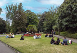 Ирландское солнце оказалось неожиданно жгучим и жарким, при том, что оно здесь нечастый и капризный гость. Вот почему, как только нет дождя, народ с удовольствием устраивается на травке, ловя кожей эти горячие солнечные лучи.