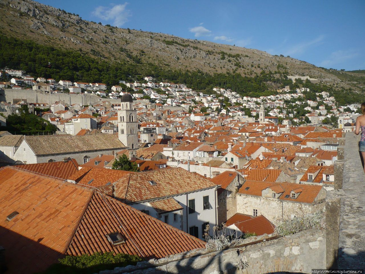 В свободное время решил ознакомиться с защитными сооружениями города. Одно из ярких впечатлений о Дубровнике оставляют крепостные стены города. Они опоясывают весь Старый город, их длина составляет 1940 метров, толщина стен – 6 метров, высота – 25 метров. Я зашел на стену со стороны Ворот Пиле – это монументальная арка с изваянием Святого Влаха, покровителя города.