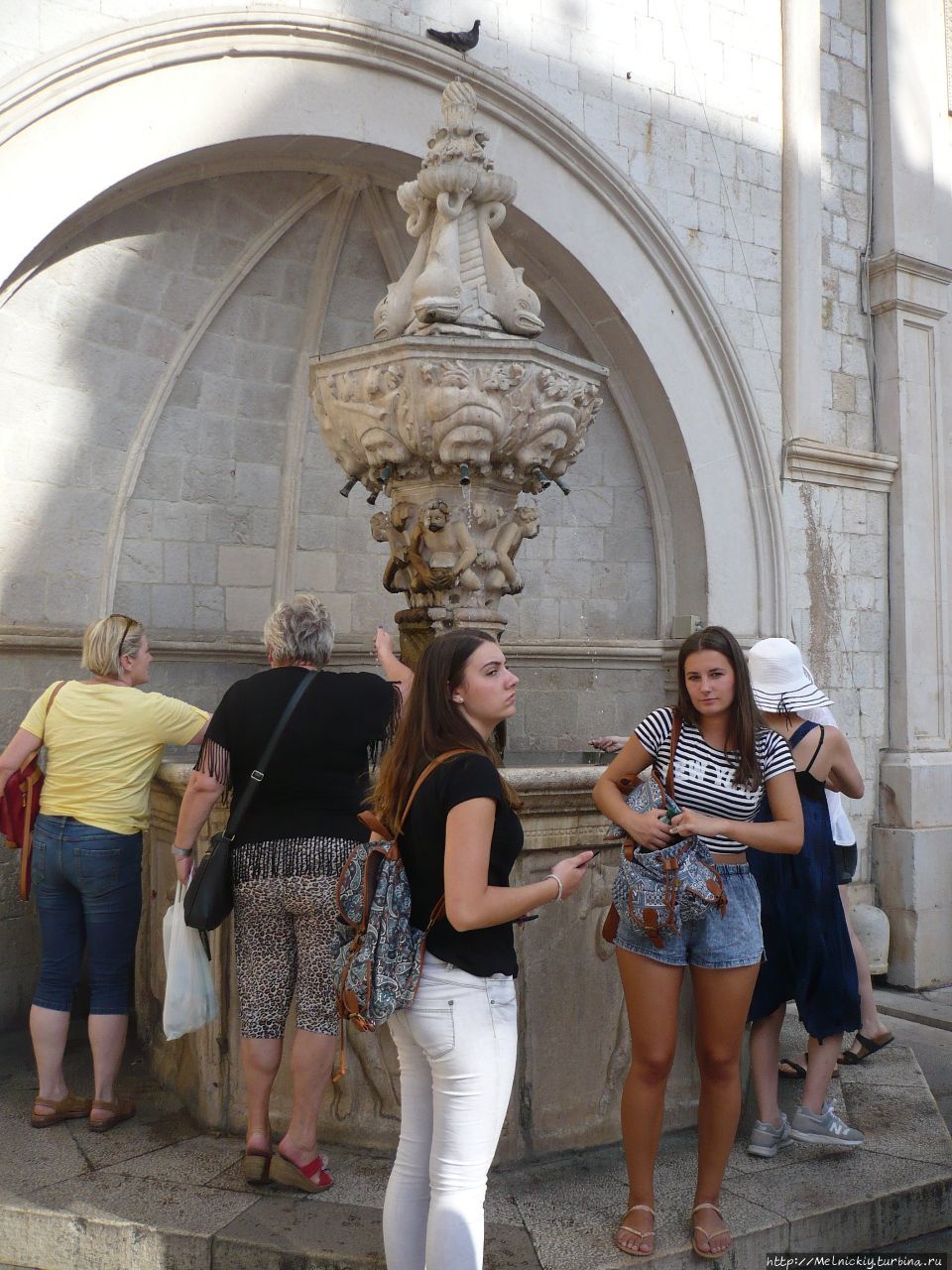 Интересный фонтан Амерлинга, или его еще называют «Амерлингова Чесма», установлен в 1900 году. Это подарок братьев Амерлингов родному городу. Создал фонтан в виде Нимфы и Сатира хорватский скульптор Иван Рендич. Многие туристические источники называют его еще Еврейским, но это ошибка. Еврейский фонтан находится рядом и ничего примечательного не составляет. В средние века евреям Дубровника разрешалось брать воду только из Еврейского источника.