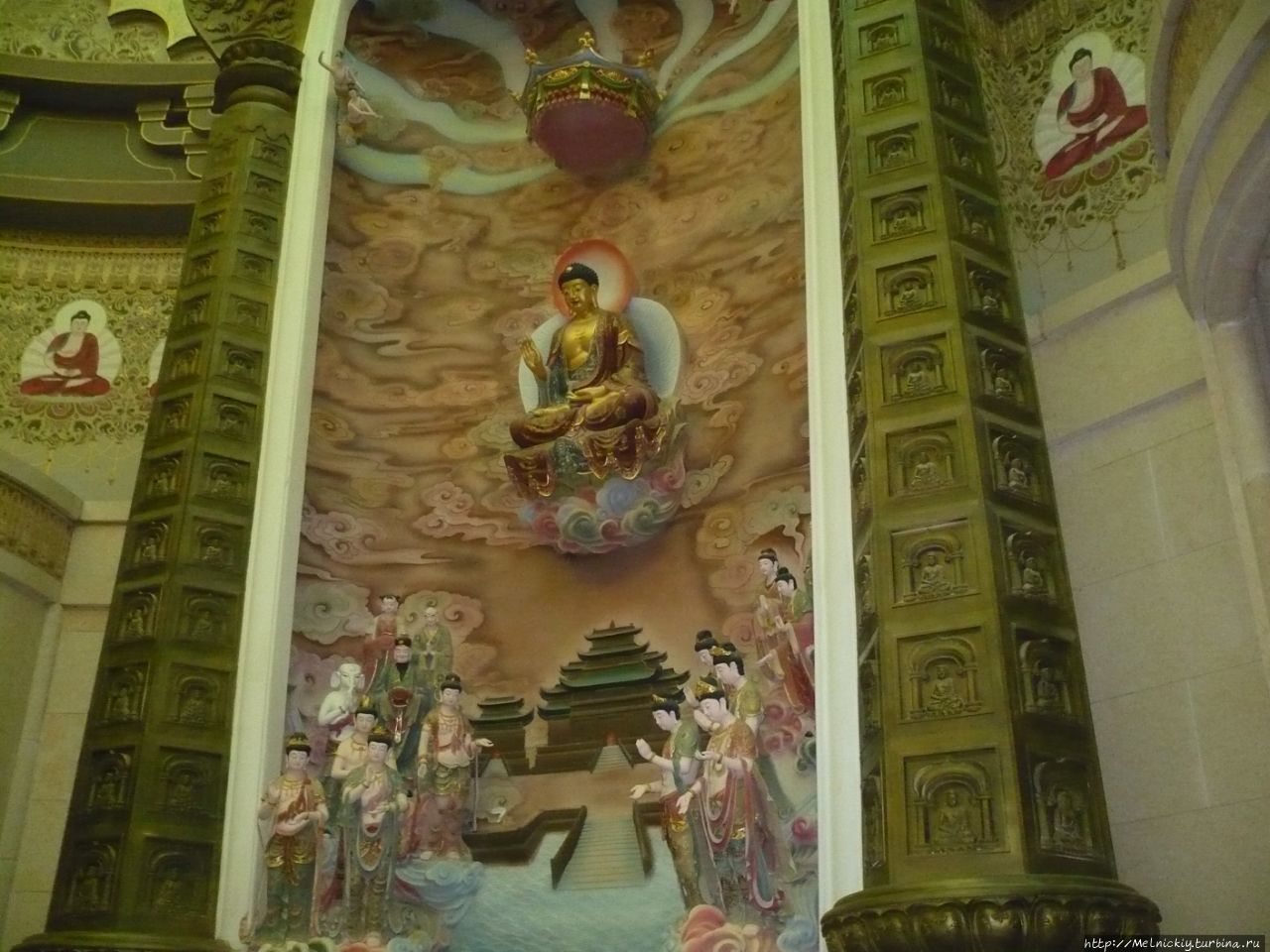 А в самой статуе находится трехэтажный храм Тысячи Будд, в котором находится 9 999 статуй и барельефов, посвященных самому почитаемому богу в Азии. В огромном храме можно гулять часами, рассматривая статуи и картины. Большинство статуй не похожи друг на друга, они ломают всякое представление европейского человека об образе буддийского бога. Тут он и враждебный воин, и добрый ангел, и щедрый благодетель, и хитрый торговец.