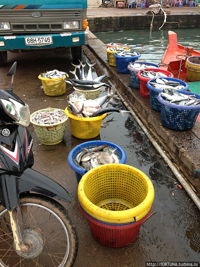 Тут же рядом с причалами выгружают и сортируют, и продают улов.