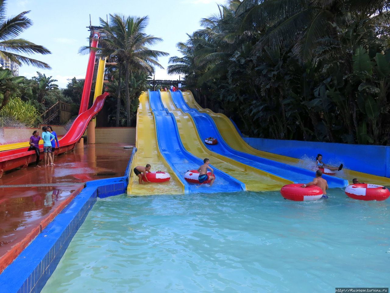 Наверное, местные жители знают свои трюки, приезжают большими компаниями или семьями, привозят зонтики, им удобно. Ну а мы решили продолжить свой отдых в аквапарке.
