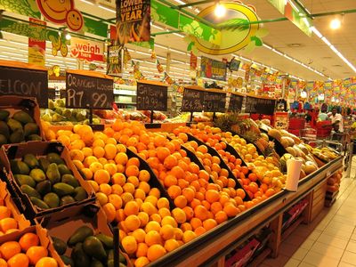 Посмотрите сами, вот отдел цитрусовых в супермаркете, куда мы заехали за сендвичами и соками по пути в Дурбан.