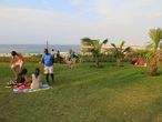 Пора с ними познакомиться поближе. Сегодня солнце в небольшой дымке, но совсем не холодно, даже приятно. На пляже располагаются разные творческие личности, создавшие из песка скульптуру африканской "пятерки" — слон, буйвол, носорог, лев и леопард.