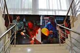 Печь отжига. По этой ленте медленно, двигаясь миллиметр за миллиметром, остывают хрустальные изделия.