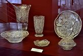 Кроме того, на заводе исполнялись предметы церковной утвари и сложные заказные детали для интерьеров. Музей дятьковского хрусталя представляет небольшую коллекцию лампад и подсвечников из цветного и бесцветного стекла.