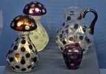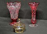 «Хрустальный экспресс». Набор, состоящий из двух штофов («локомотив»), салфетницы, лотка для закусок и 10 стопок. Все части экспресса, кроме колес, выполнены методом выдувания и украшены алмазной гранью. Колеса выполнены методом пресса и приклеены к основанию.