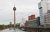 От "пьяных домов" проходим чуть вперед, в бывший порт. Сейчас этот район называется MedienHafen ( Медийная гавань). Из унылого портового района Медийная Гавань превратилась в модное место, концентрацию архитектурной фантазии.