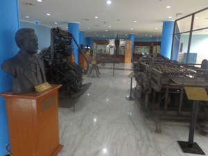 У входа в музей стоит монумент репортерами автомобили ТВ Индонезии