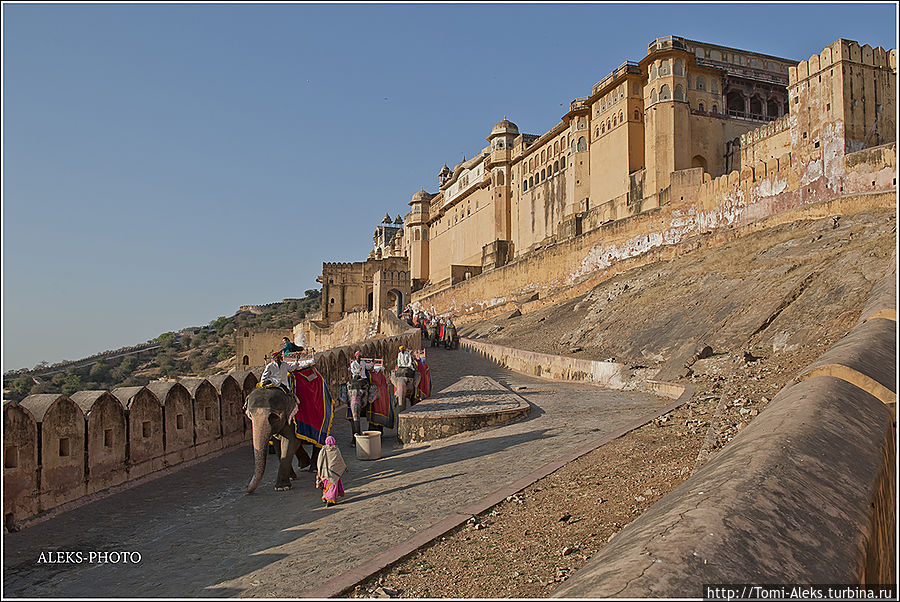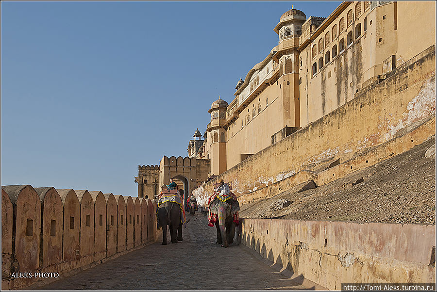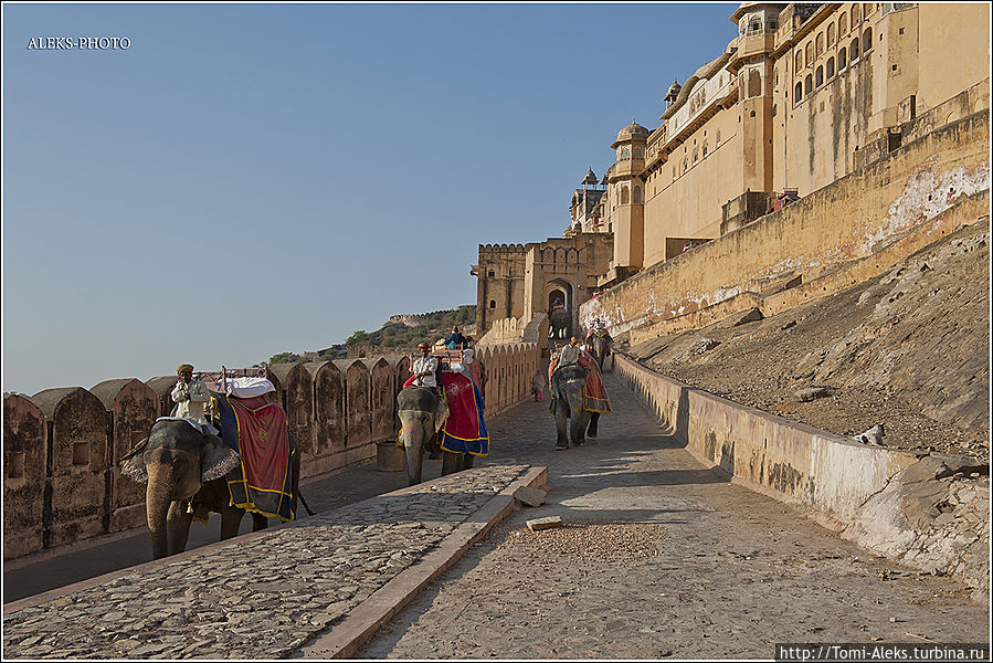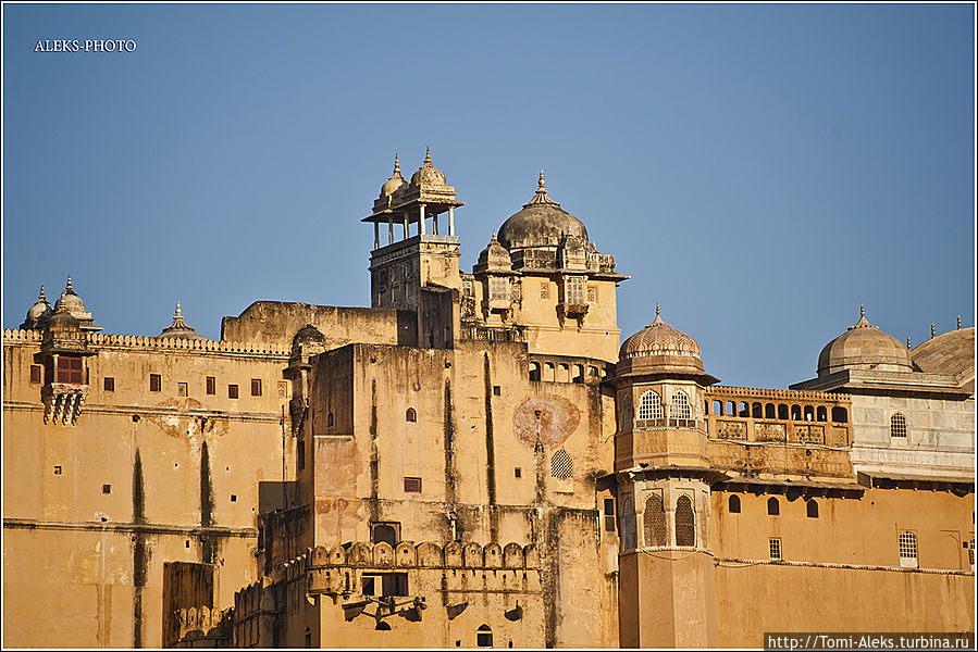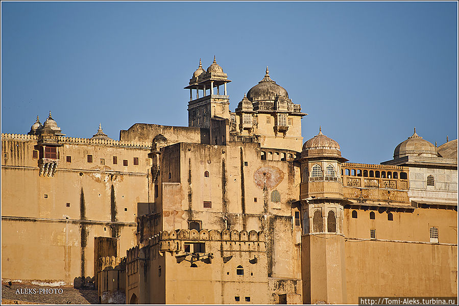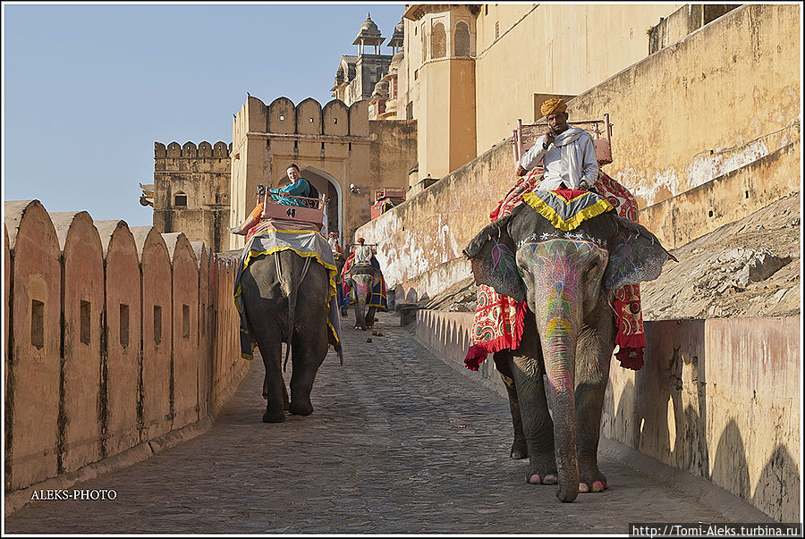 Честно говоря, я не знал, как мне начать описывать то место, где я отщелкал за один день две тысячи кадров. Когда я приезжаю в такие интересные места, меня трудно остановить, недаром американцы меня прозвали "crazy photografer". Форт Амбер произвел на нас даже большее впечатление, чем Запретный город в Пекине. Огромная крепость янтарного цвета, куда туристы въезжают на слонах, не может оставить равнодушным.