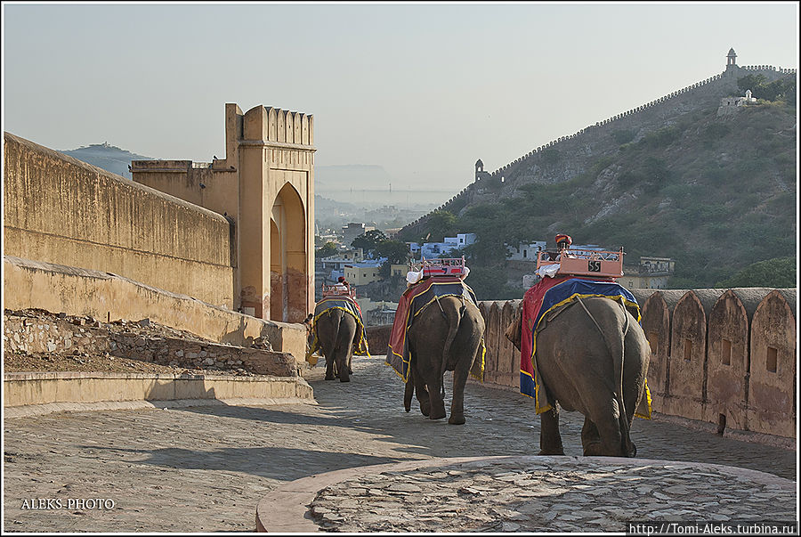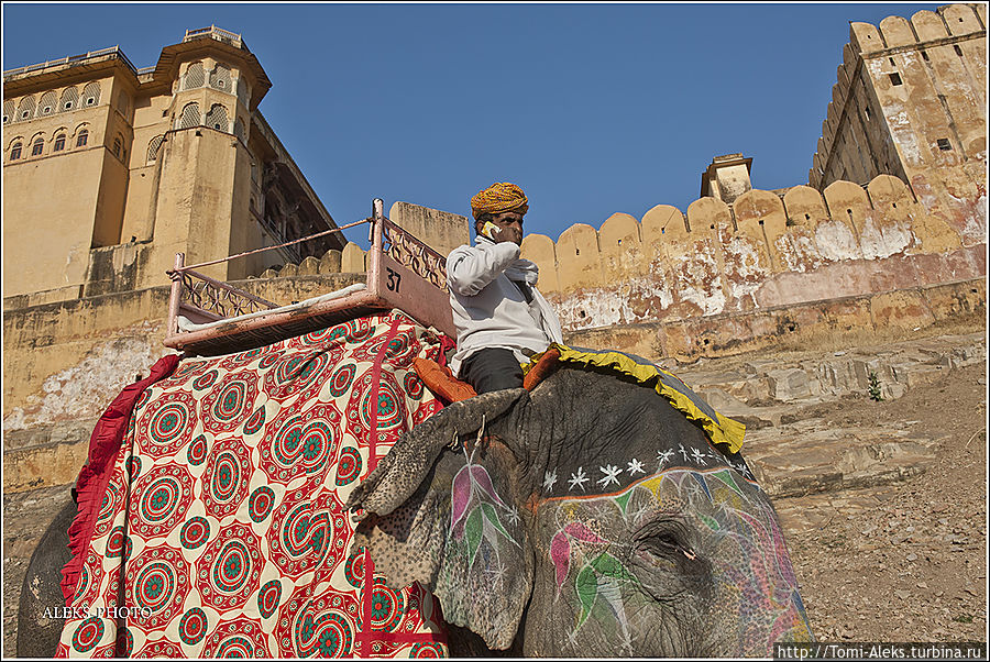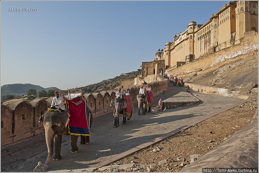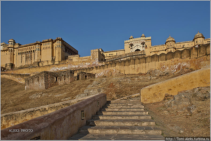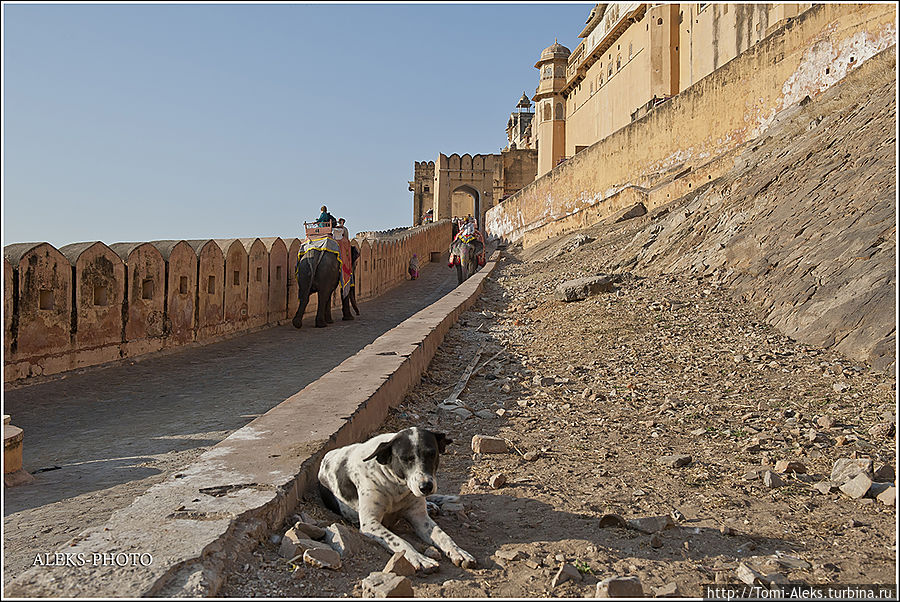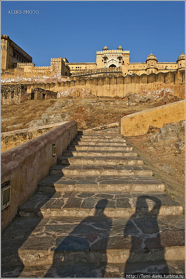 Честно говоря, я не знал, как мне начать описывать то место, где я отщелкал за один день две тысячи кадров. Когда я приезжаю в такие интересные места, меня трудно остановить, недаром американцы меня прозвали "crazy photografer". Форт Амбер произвел на нас даже большее впечатление, чем Запретный город в Пекине. Огромная крепость янтарного цвета, куда туристы въезжают на слонах, не может оставить равнодушным.