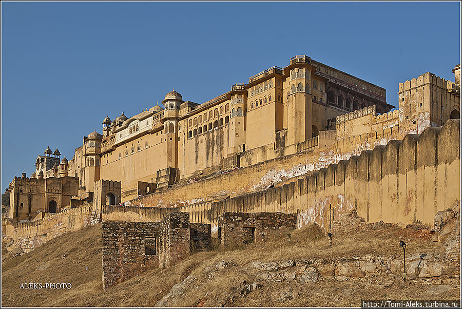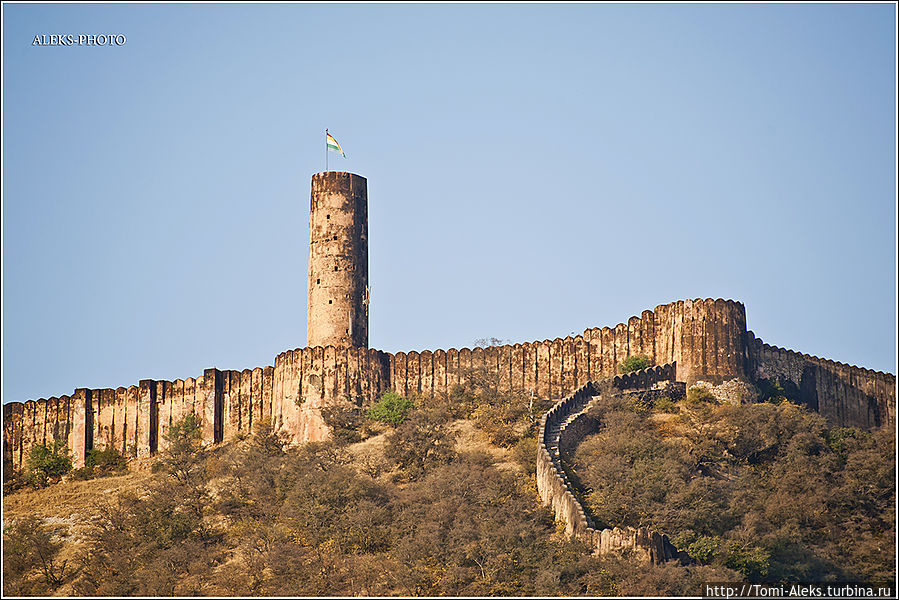 А выше этой крепости — еще одна крепость на другом уровне и с другим названием — это "Тигриный форт". Из него открываются виды на расположенный ниже форт Амбер и противоположные холмы, на которые взбираются змейки маленьких "китайских стен". Имитация — полнейшая. Так что с этим местом в своих "Индийских Приключениях" распрощаться мне будет непросто и фоторассказ о нем растянется на несколько заметок. В общем, буду обрабатывать залежи фото и потихоньку выкладывать их в заметках. И при чем тут рейтинг, если это мне итак доставляет удовольствие?