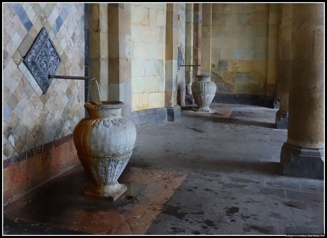 Всего здесь пять источников с температурой 30, 35, 45, 50, 53 градуса. Вкусной водичку не назову, но она вполне «съедобная». Специальные поильники и разные сувениры можно купить тут же.