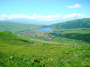 Сверху виден правый, курортный берег Джермука: почти все эти здания санатории и отели.