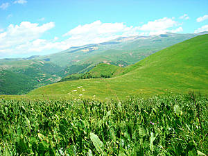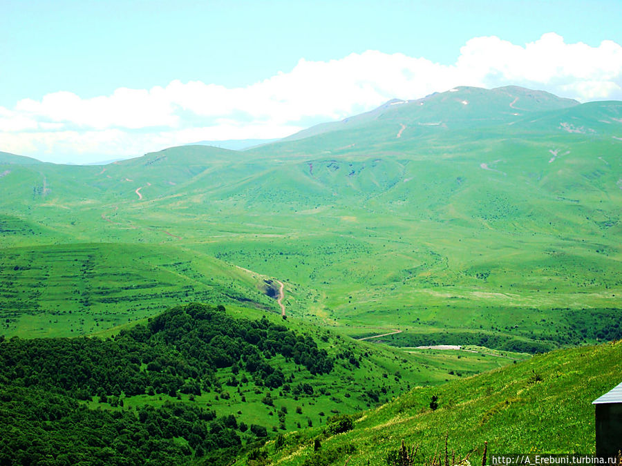 Будем покорять гору Шиш — в переводе с армянского значит "бутылка": почему, мне не очень понятно — не такая уж она высокая и острая. При высоте 2850 метров Шиш очень широкий, толстенький. Может, темно-зеленый цвет горы напоминает цвет бутылки минеральной воды "Джермук" ;) такой же глубокий зеленый, непрозрачный.
