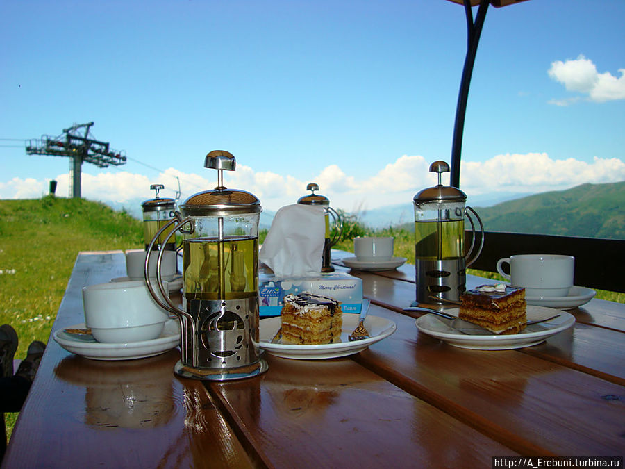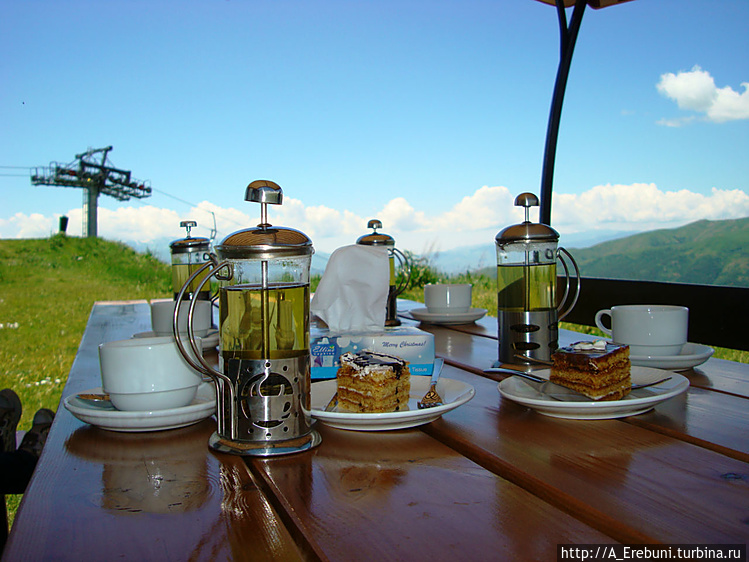 Отправляемся в кафе на верхней станции. Оно почти копия кафе на первой станции. Хотя тут однозначно логичней кушать хаш — высота, прохладно.