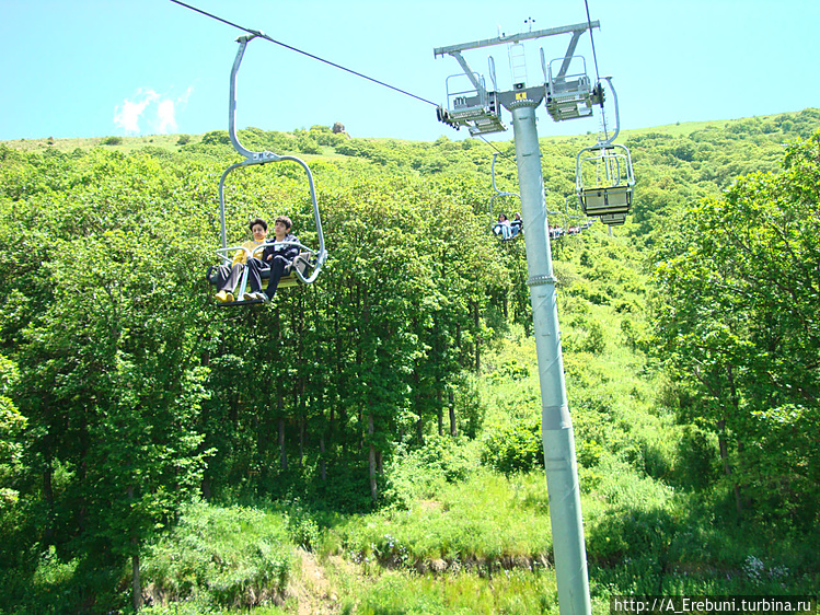 Итак, мы загружаемся в двухкресельные подъемники соответственно по двое.