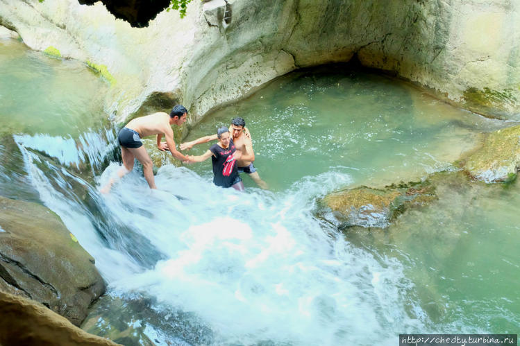 Нужен пластиковый пакет, что бы прятать фотик. В пещерах крепко течет с потолка. Дамам желательно прихватить двух мужиков покрепче, у кого с собой нет, выдают на месте.
