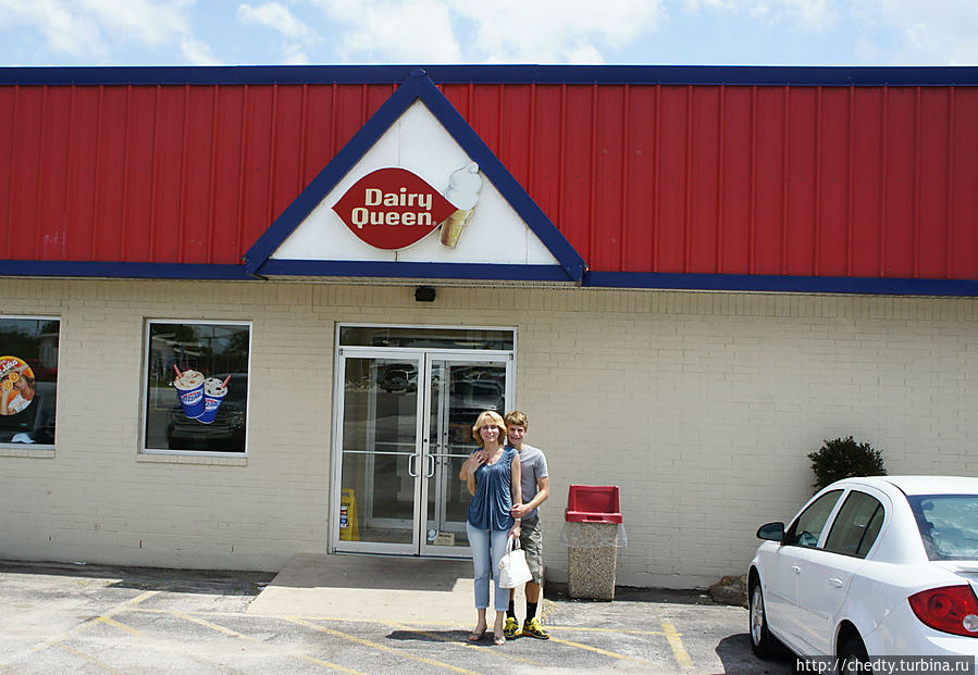 Внешне Джонсон Сити не шибко отличается от других, от других соседних городишек. Три церкви, музей пионеров, десяток исторических зданий, множество придорожных ресторанов активно эксплуатирующих любовь Президента Джонсона к барбекю и другой не здоровой техасской пище. Мяса на обед мы явно не хотели и очень обрадовались затесавшейся в этот «мясной ряд» забегаловке с мороженным. Дейри Квин кафе традиционное, этой сети больше ста лет. Мороженное на юге Штатов чрезвычайно популярно, Дейри Квин исконно ставила свои рестораны на перекрестках дорог, что бы фермеры могли вечером пригласить своих дам на мороженное.