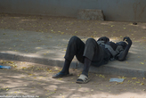 От места, где спит этот парень, до центральной улицы с правительственными зданиями – 100 метров. Это самый центр Джубы, фотографировать постройки я не рискнул).