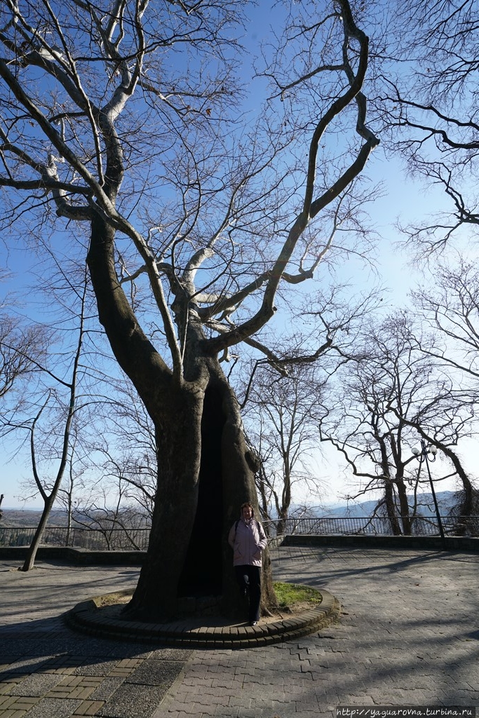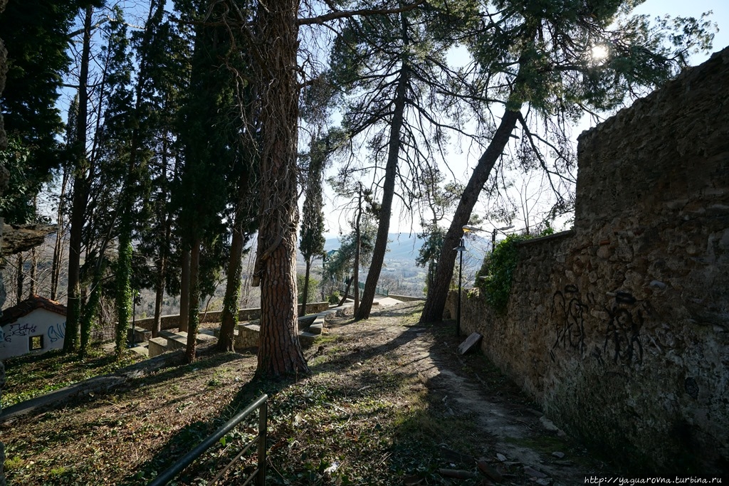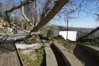 Обращает на себя внимание выдающимися размерами дерево. Про него рассказывают, что в 1916 году через Эдессу проходили французские войска, и кто-то из солдат оставил здесь саженец гинкго. Растение, которое не относится к числу неприхотливых, все-таки прижилось в несвойственном ему климате и растет себе уже 100 с лишним лет. Честно говоря, сомневаюсь, что солдат в походе таскал с собой китайский саженец, чтобы приткнуть его в греческой земле, но чего только не бывает...