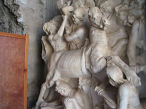 Если зайти на агору через ворота , то справа в нишах за решетками можно увидеть вот такие скульптуры.