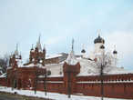 Проезжая по Владимирской улице небольшого уютного города Егорьевска нельзя не заметить нарядные привратные башенки, выполненные из красного кирпича и воспроизводящие формы Царской башни московского Кремля. Башенки эти, как и другие, украшающие кирпичную стену, принадлежат Свято-Троицкому Мариинскому монастырю. Проехать мимо такого чуда просто невозможно! А мы и не будем проезжать, мы остановимся и пройдём на территорию монастыря, тем более, что там нас ждёт много чего красивого и интересного.
