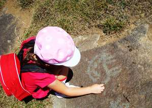 Рядом с камнями, на которым больше всего петроглифов или они четко обрисованы, кто-то заботливо сложил мелкие камни, чтобы привлекать внимание.