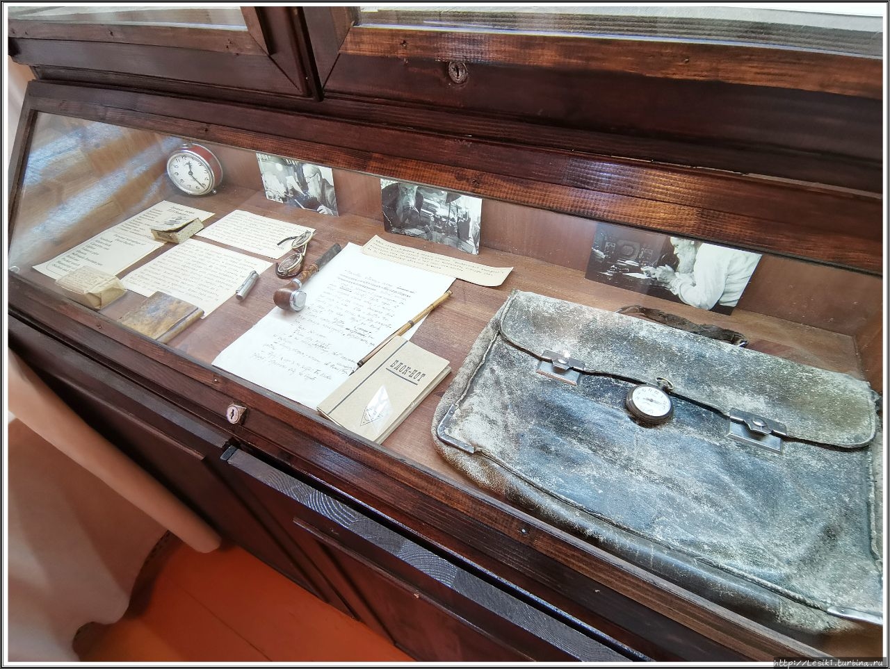 В торце коридора, у окна, находится конторка, за которой работал Павел Петрович. Именно здесь были написаны его знаменитые сказы. Писал он ночами, в свободное от основной работы время. Работал, как правило, стоя, писал в обычных школьных тетрадях. Каждое предложение писатель тщательно продумывал прежде, чем записать его. Со слов нашего экскурсовода, все черновики Бажова легко читаемы, в них нет помарок и исправлений.