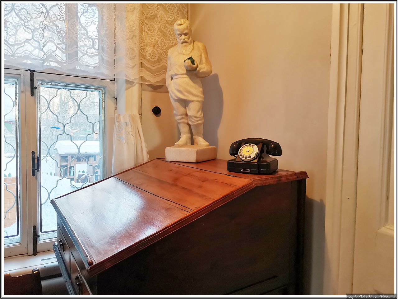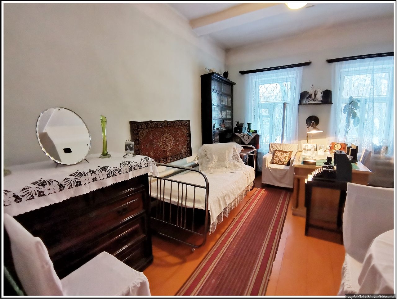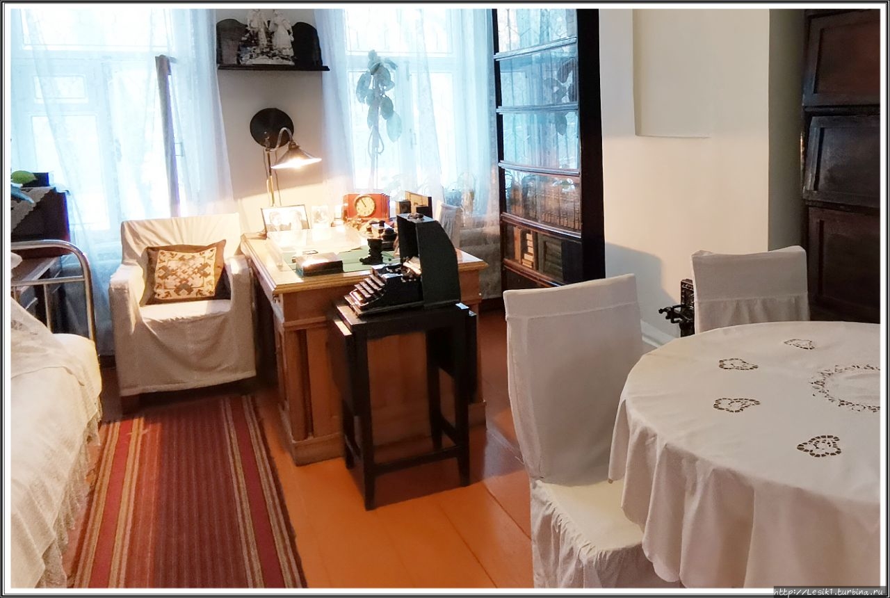 Из коридора можно попасть в комнаты. В одной из них, в которой началась наша экскурсия, располагалась гостевая – в разное время здесь жили тёща писателя, Екатерина Васильевна, и сестра жены, Наталья Александровна. В этой же комнате проживала эвакуированная семья из Ленинграда.