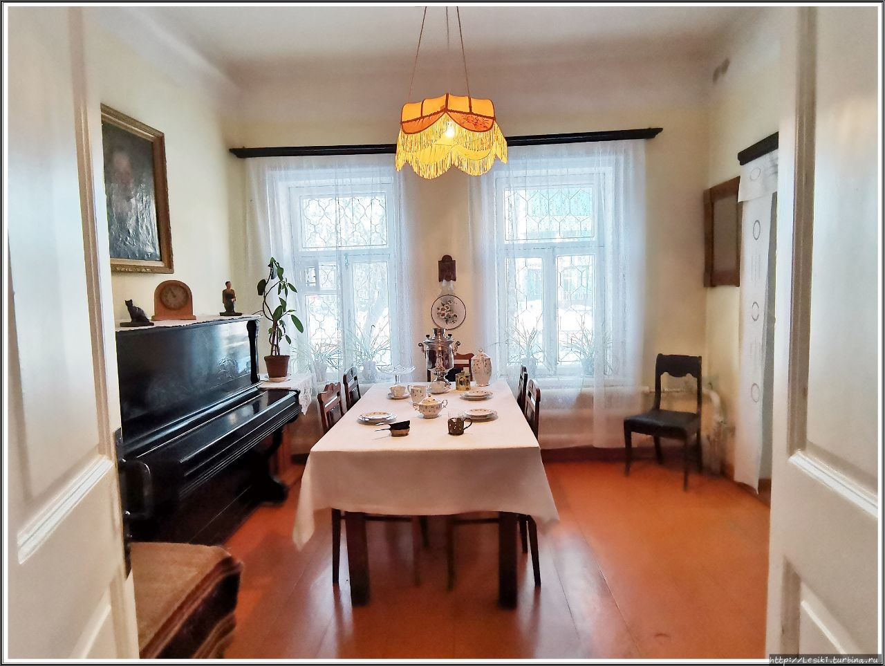 Самым любимым временем в доме были вечера, когда семья собиралась у самовара в столовой, или как называли её Бажовы – в комнате с абажуром. Это именно та комната, которая была выделена семье Бажовых после их возвращения в Екатеринбург. Отсюда ведёт дверь в кухню и затем в сад, разбитый писателем. В настоящее время в помещении кухни располагается служебное помещение и попасть туда невозможно. А сад открыт для посетителей в летнее время года. Но о саде позже.