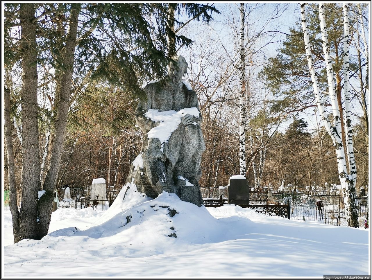 Памятник окружен цветником, но этой зимой всё было засыпано снегом и памятник предстал перед нами так.
