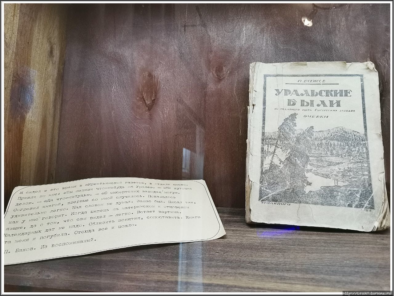 Экскурсия начинается с биографии писателя в небольшой комнате, где представлены его личные вещи. В витринах — карманные часы, курительная трубка, портсигар, очки, перьевая ручка, рукописи, портфель, рукавицы, рабочие инструменты и другие вещи, которыми пользовался Бажов.