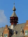 Вот только попадание этой колокольни в этот почетный список удивляет даже официальный сайт города. Да, в городе, основанном в 13 веке, именно на этом месте находился первый судовой дом, благополучно сгоревший в 16 веке. Дальше здесь находилась приходская церковь, снесенная в 1878 году в связи со строительством большого собора рядом (он мрачной кирпичной кладкой проглядывается на первом снимке за ярким зданием городской ратуши). Вот на месте церкви и была в 1930 году построена городская ратуша.