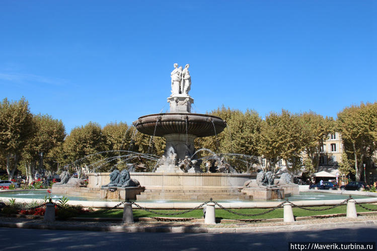 прекрасные многочисленные фонтаны; городская ратуша с часовой башней и конечно платаны на бульваре Мирабо.Экс отличается от других городов Прованса ощущением полной завершённости. Это объясняется его прекрасным расположением в центре региона, благодаря чему здесь не чувствуется ни деревенской простоты, ни коммерческого дешёвого блеска.