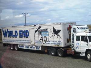 Оживлённое движение на дороге становилось заметным. Большегрузные фуры, с многозначительной надписью «Конец мира» шли с Огненной Земли.