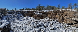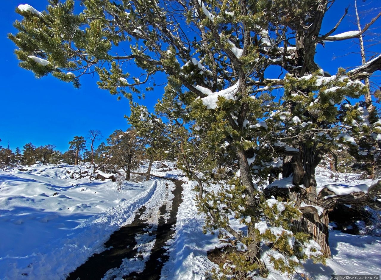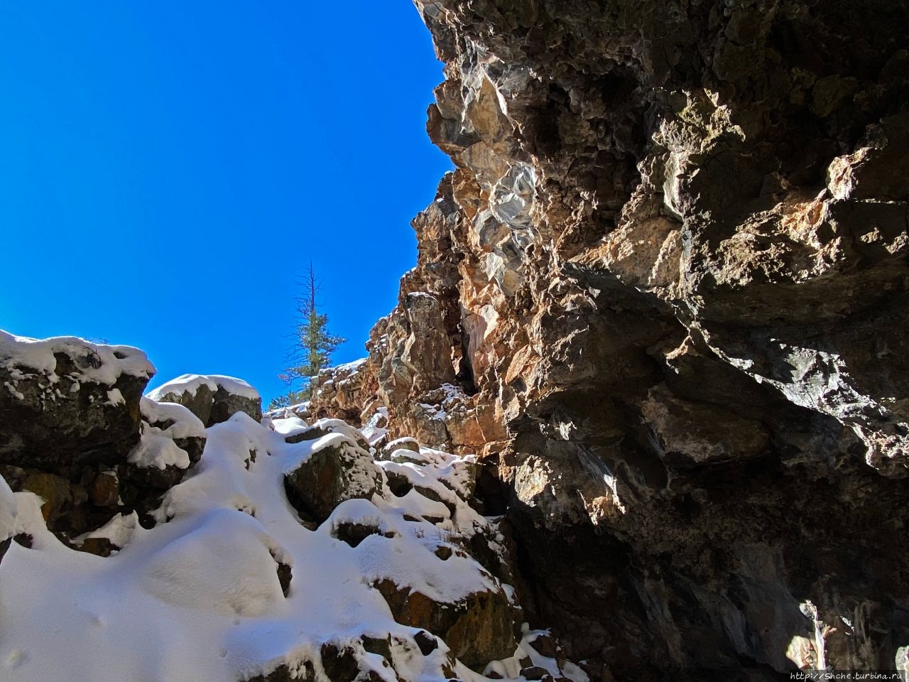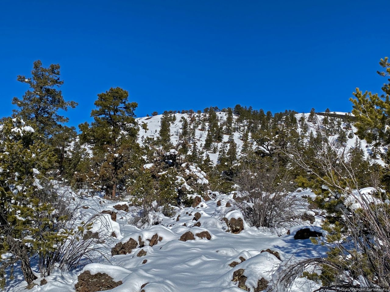 Бандера в снегу - шлаковый вулкан в Нью-Мексико... ... нам оставалось совершить еще одну короткую, как нас сориентировали в инфоцентре, не более получаса туда-и-обратно, прогулку к Ледяной пещере...