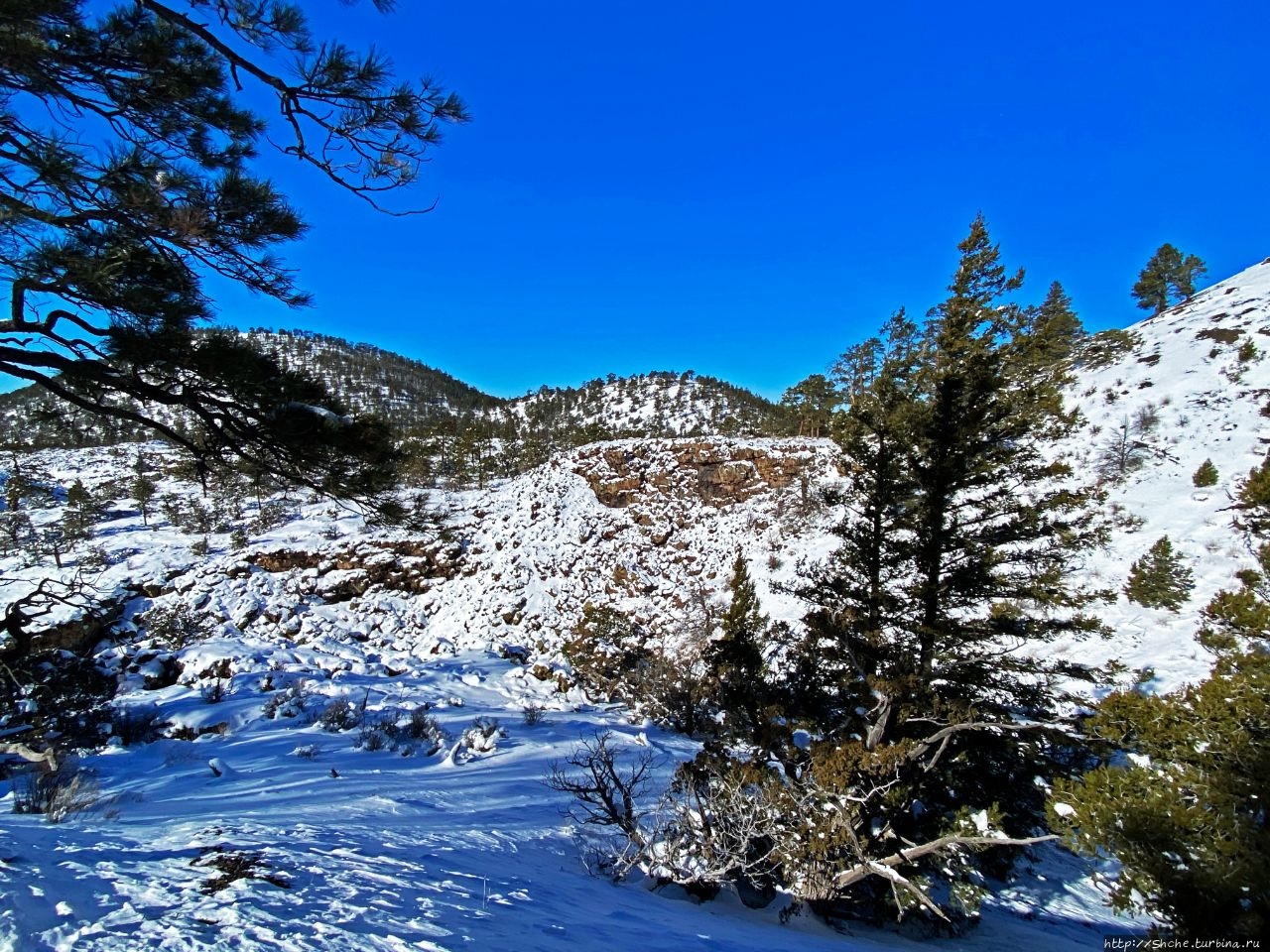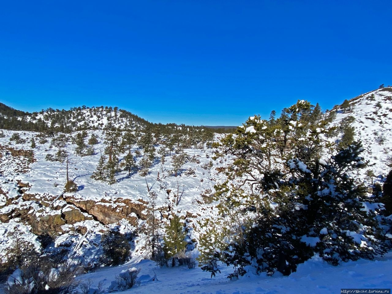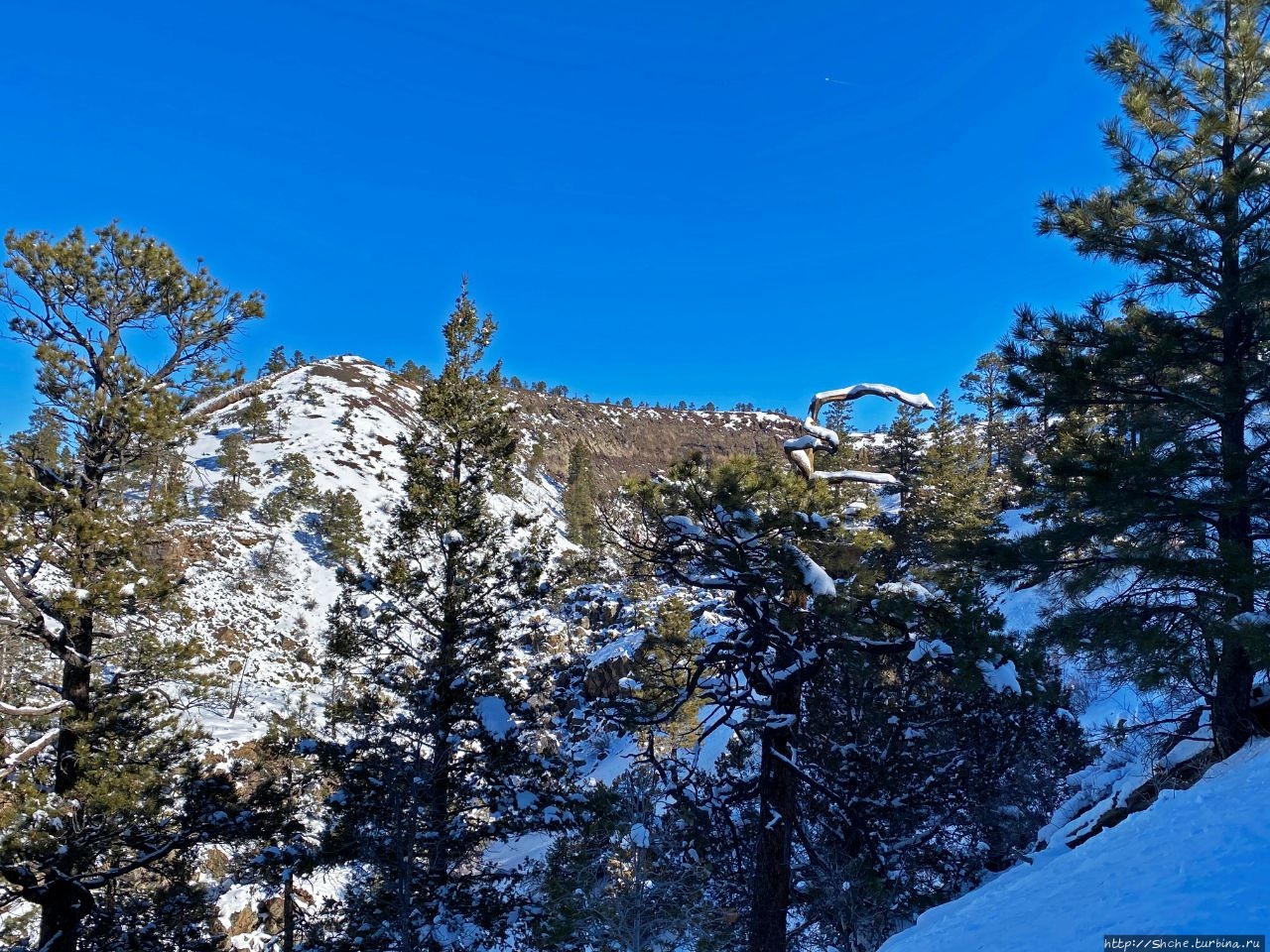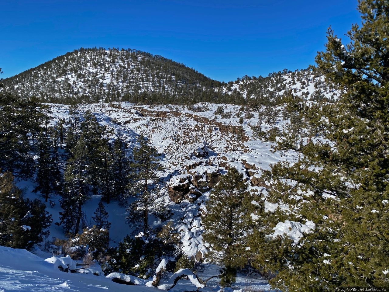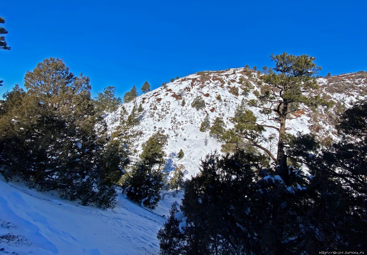 Бандера в снегу — шлаковый вулкан в Нью-Мексико