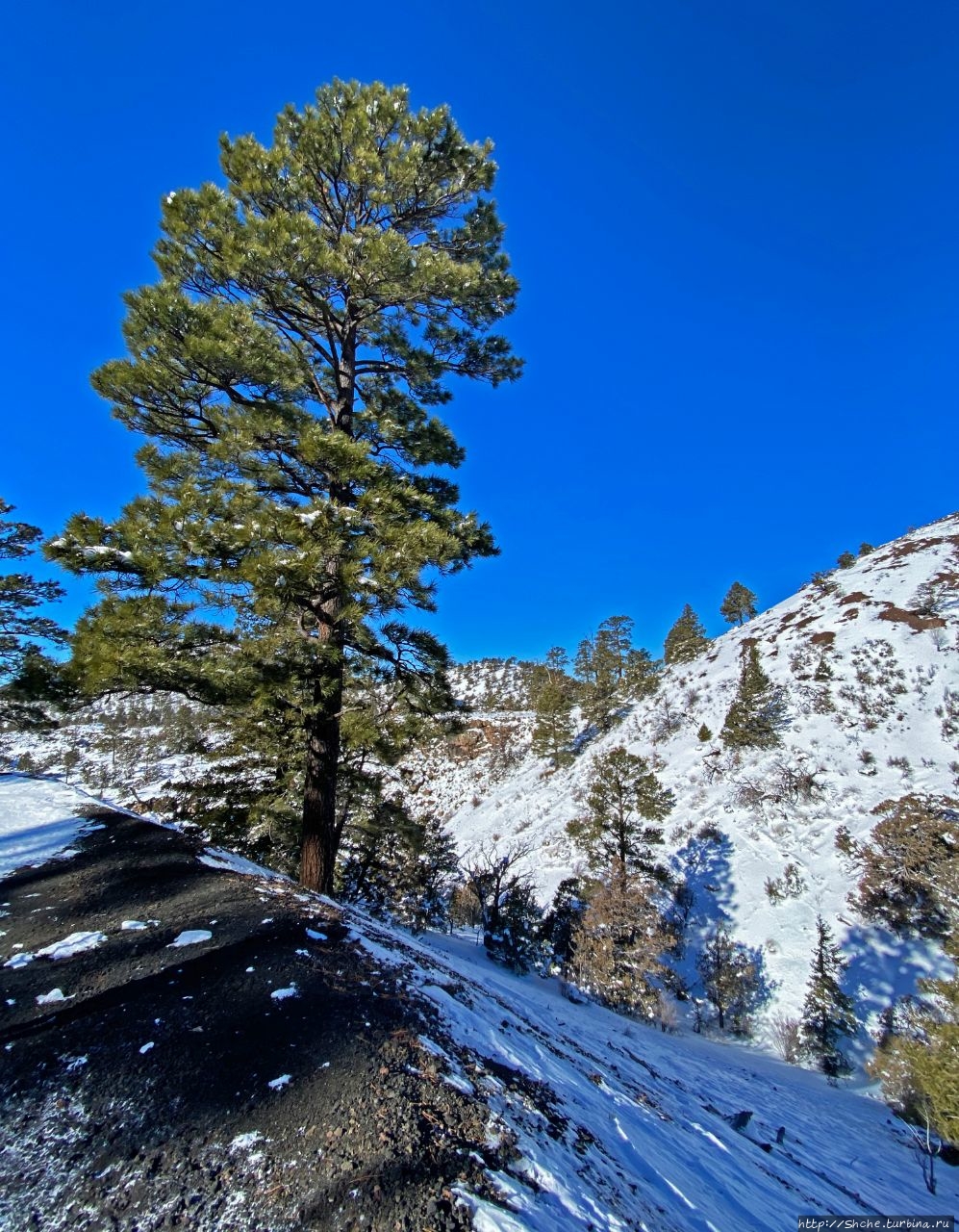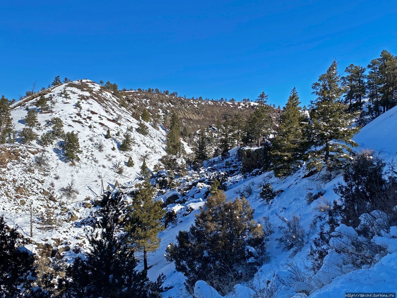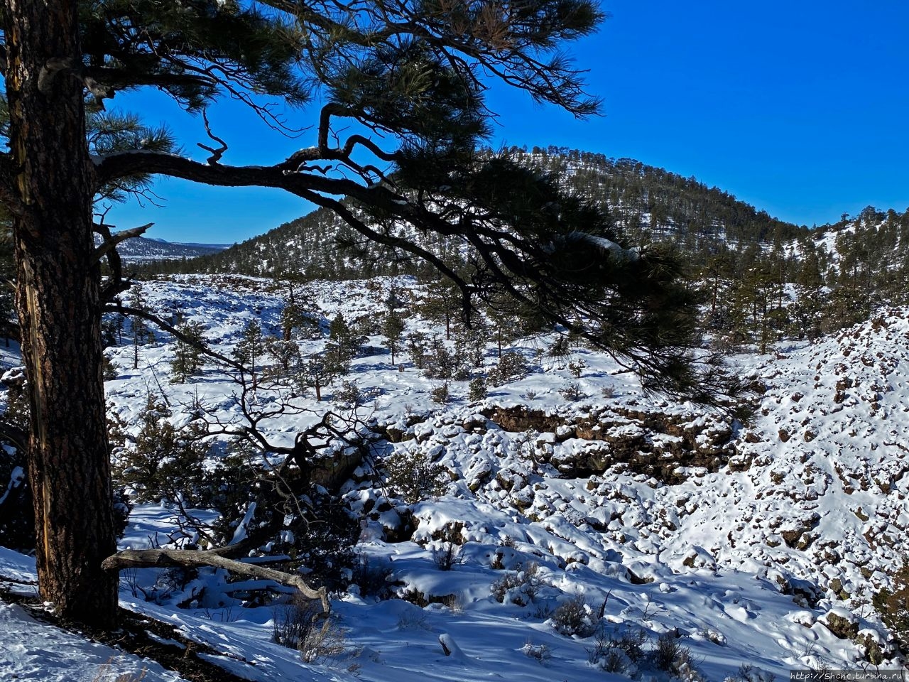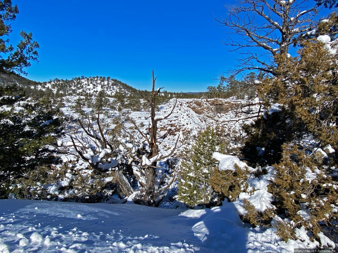 Бандера в снегу — шлаковый вулкан в Нью-Мексико