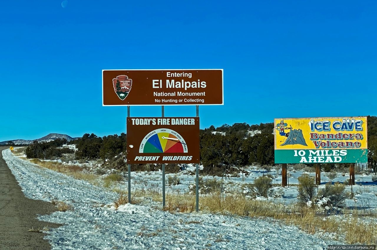 Именно кратер Бандера мы и посетили в то морозное февральское утро. Именно мороз стал для нас первым откровением того дня. Ведь мы приехали из солнечного Техаса, а здесь оказалось около 10 градусов по Фаренгейту, что в пересчете на наши родные градусы Цельсия дают ту же десяточку, только со знаком минус.