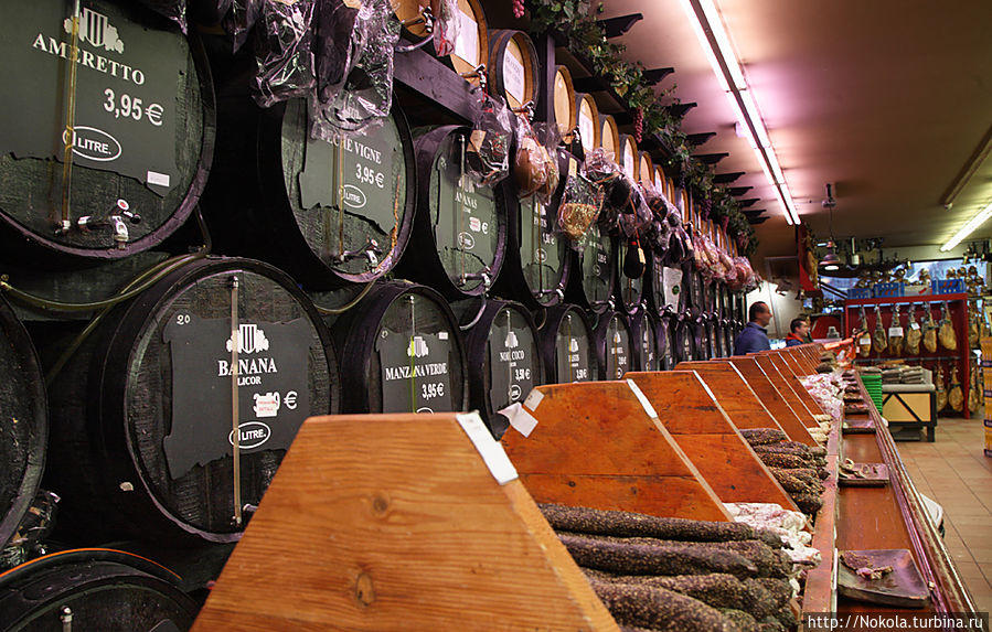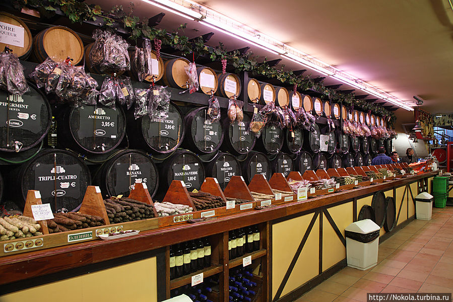 Спустя годы все немного изменилось и сейчас же попробовать можно только то, что предлагает человек, представляющий определенные наименования и весь бочковой ассортимент. А ассортимент хорош — около пятидесяти бочек с различными напитками в розлив, которые здесь же упакуют в пластиковую или стеклянную (по желанию) тару. Ну и всевозможные оригинальные сыры и колбасы здесь тоже есть в ассортименте. Ну а еще появилось огромное количество надписей на русском языке да персонал тоже немного стал овладевать русским.