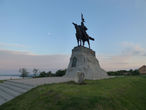 Это историческая булгарская крепость, основанная эмиром Ибрагимом I бен Мухамадом (вот, собственно, он на скакуне; пямятник был открыт как раз в 2007 году, на тысячелетие Елабуги).