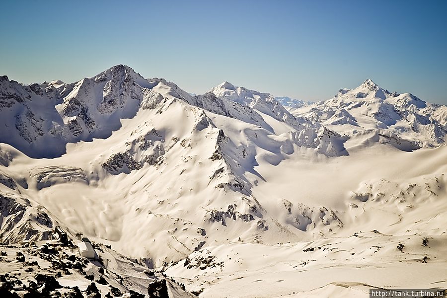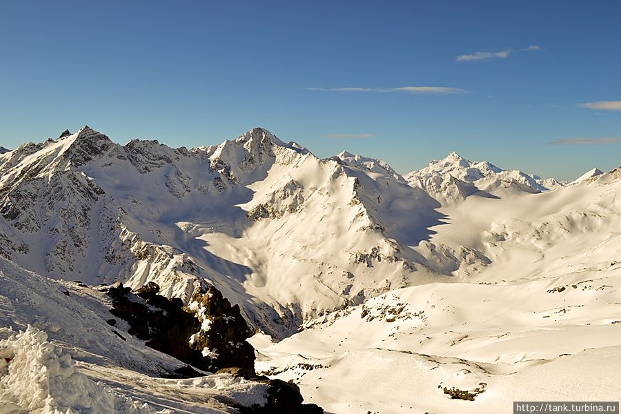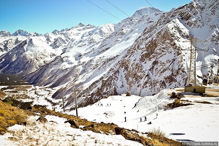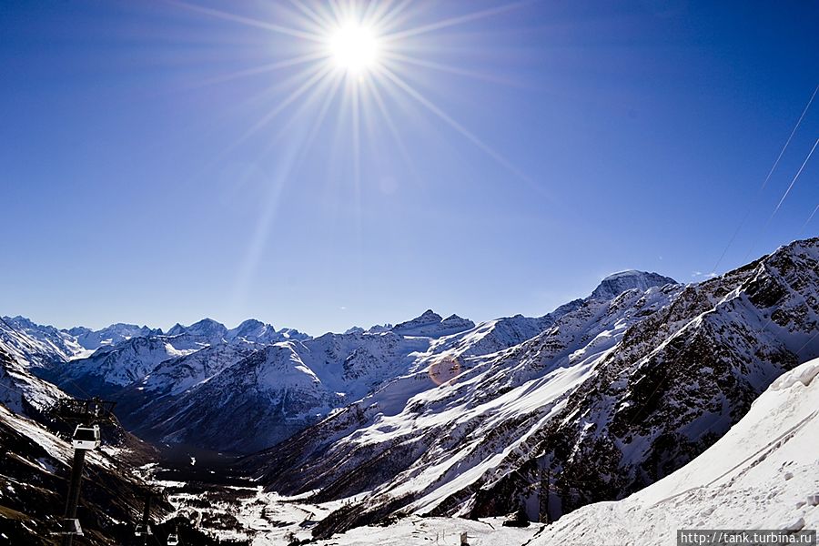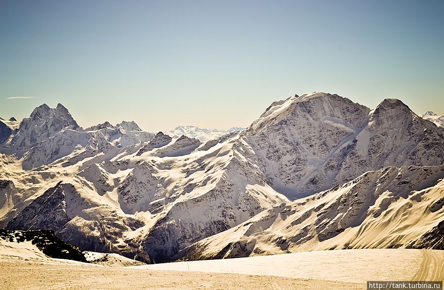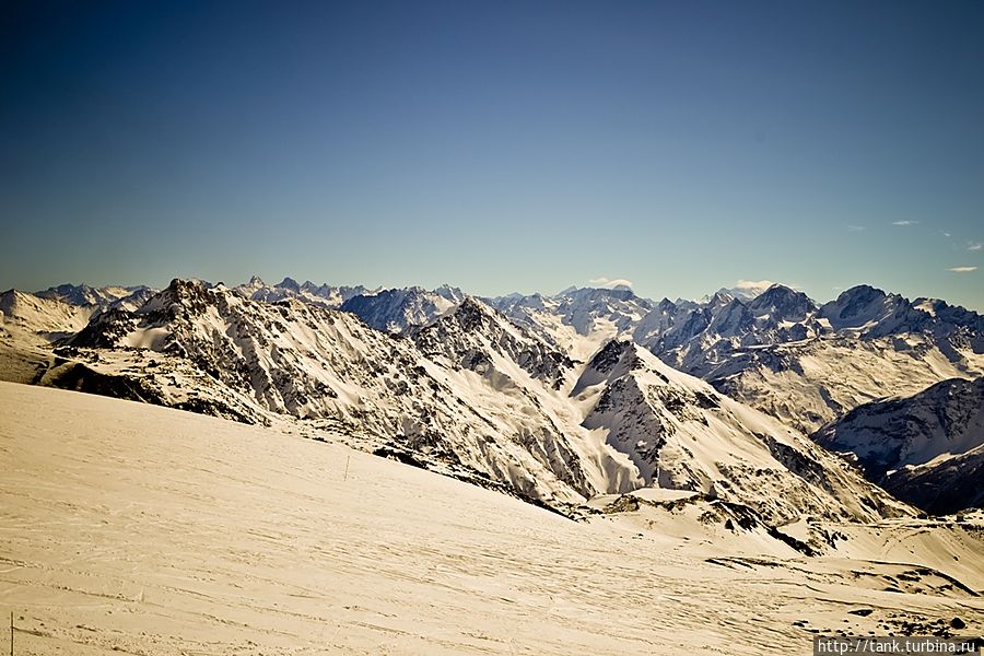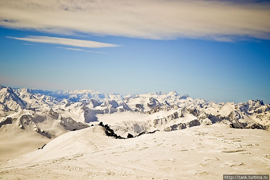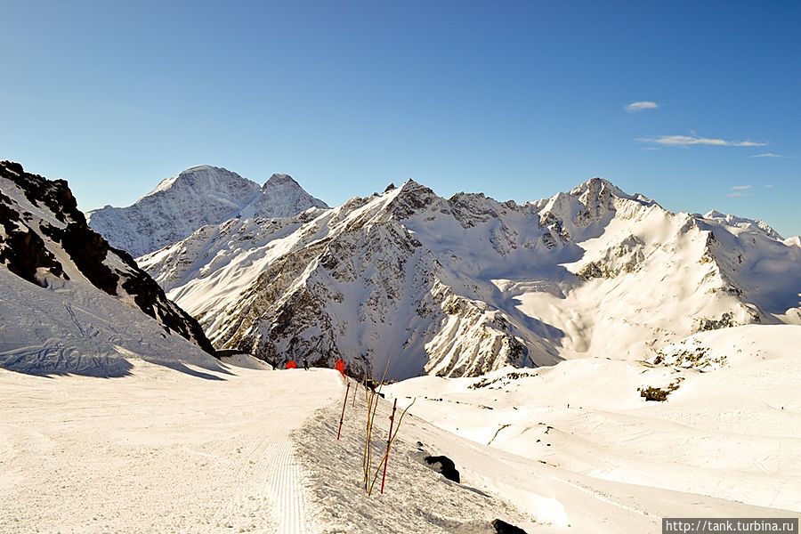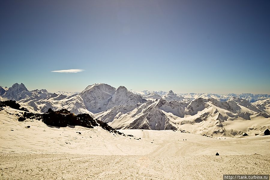 Утром, приехав на поляну Азау, и порадовавшись прекрасной погоде, поднялись на Станцию Мир (3500 м). К сожалению, в этом году Эль обделен снегом, но, тем не менее, покатать все, же удалось. Спустившись пару раз со станции Мир до Кругозора, мы не уставали радоваться прекрасной погоде.