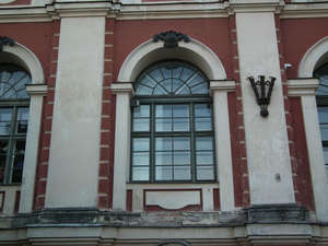 "Глушь да дичь над Митавой ("дыра из дыр стран не токмо Европских, но и ориентальных"). Краснея битым кирпичом, присел в сугробах древний замок курляндских герцогов. Уродливые львы на гербовых воротах, да ветер с Балтики ... Тишина ... мгла ... запустенье ... скука ... " — так описывает замок и Митаву Пикуль.