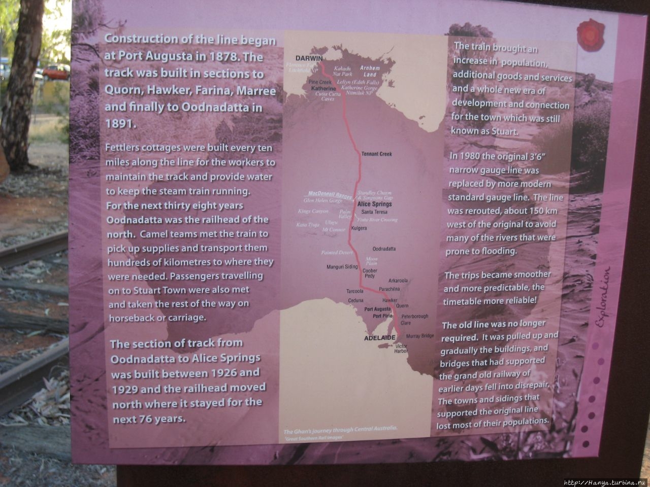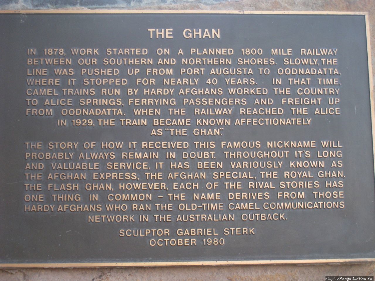 Железнодорожная ветка Ган была названа в честь погонщиков афганских верблюдов, здешнего первого транспортного средства.